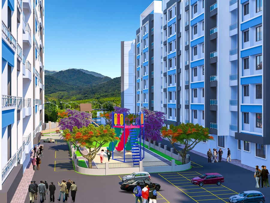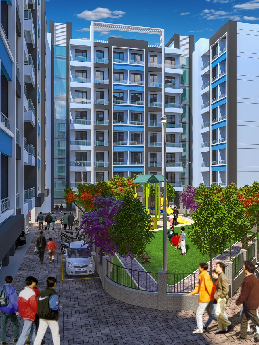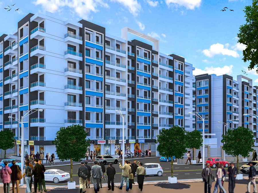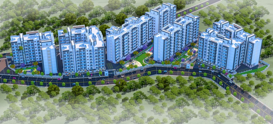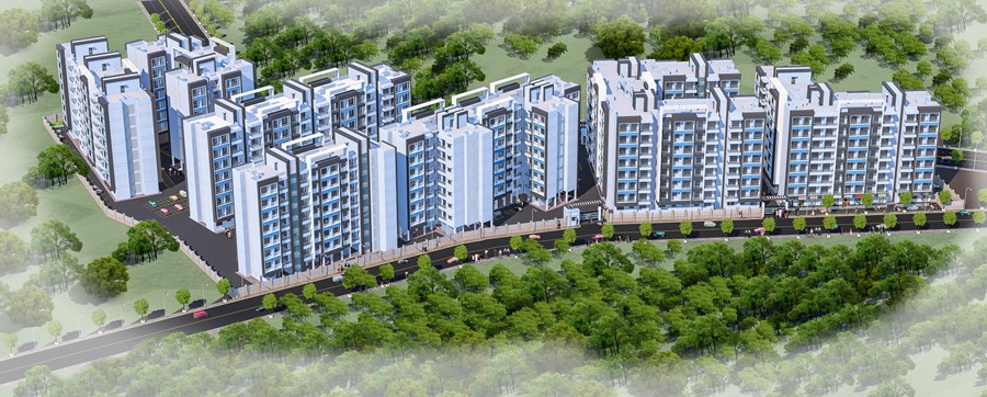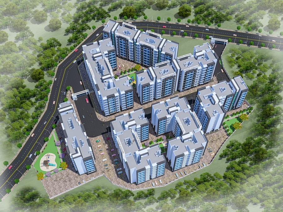 Proposed township at the outskirts of Thane at Titwala. The large scale project contains of two prominent phases, Phase 1 and Phase 2. Each phase contains 7 clusters of buildings raising at 7 floors and accompanying commercial spaces at the Ground floor.